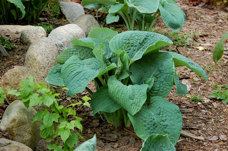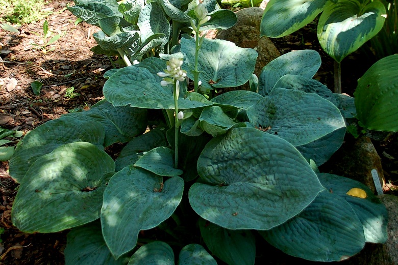 Z pąkami kwiatowymi osadzonymi na ulistnionych łodygach ( za nią, w tle hosta Will of Fortune)