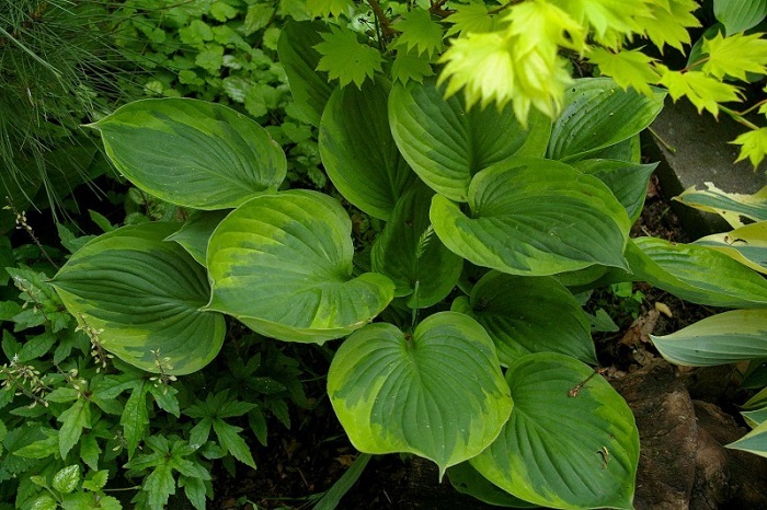 - ciekawa, choć niezbyt popularna hosta;zachwyca kolorami od wiosny do końca sezonu