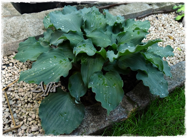 - ciekawe połączenie niebieskiego koloru (hosta utrzymuje go cały sezon, podczas gdy inne niebieskie hosty są już zielone) i wspaniałej, regularnej falbany... Cud,miód!