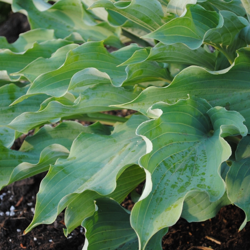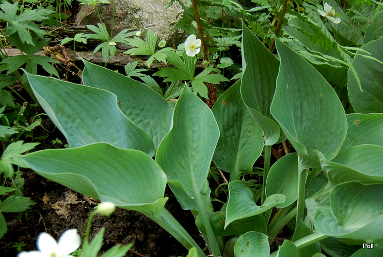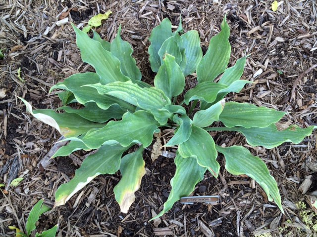 Usilowalam znalezc rodzicow tej odmiany, ale Zilis nie ma jej, a w necie wspomniane tylko ze jest hodowli Walter Gardens. Szczerze mowiac, Twoja wyglada bardziej jak mlody Halcyon niz Joy Ride. Jestes pewna, ze dostalas wlasciwa odmiane? Na zdjeciach i na mojej hoscie liscie sa wezsze, szcegolnie przy podstawie, a dluzsze.