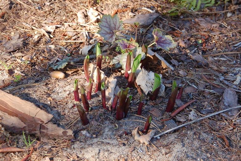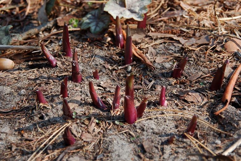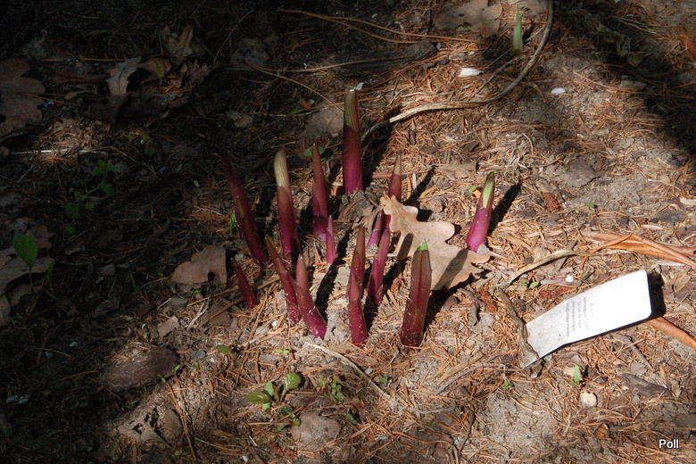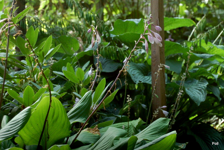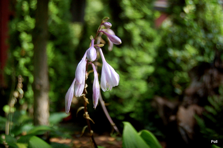 Rozmiar: M wysokość 40-45cm Liście: zielone , skręcające się ,o lekko podwiniętych do wewnątrz brzegach osadzone na ciemnobordowych lodyżkach; pokrój wyprostowany Kwiaty:lawendowe, w pąku purpurowe (poł.VIII) Stanowisko: od półcienia