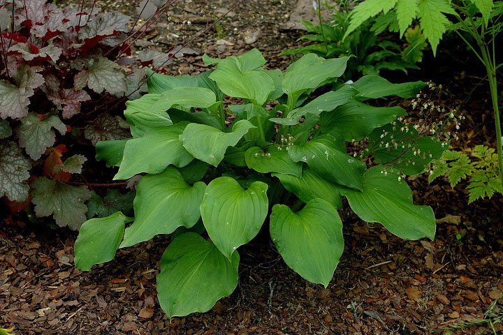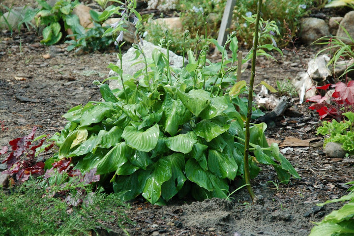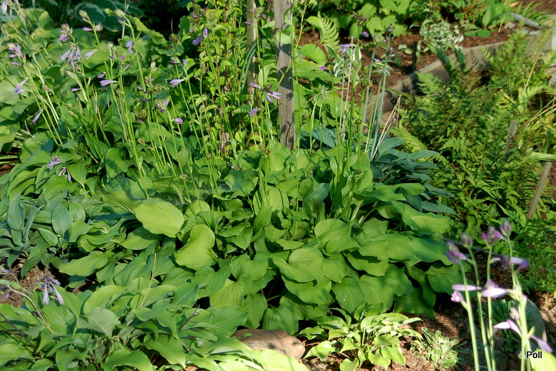 Dodam,że jest wrażliwa na suszę i operację słoneczną, o ślimakach nie wspomnę. Listki jej sa mięciutkie i śmiesznie się układaja, gdy hosta jest już dorosła ( wygląda to, jakby dwie strony liścia przełamywały sie na głownym nerwie) . Sprawia wrażenie wiecznie omdlałej. Bardzo oryginalna i lubię ją - jedna dostała poczesne miejsce przy okręgu dryopterisowym a druga pod pięknym , kolorowym dereniem.