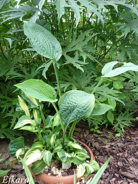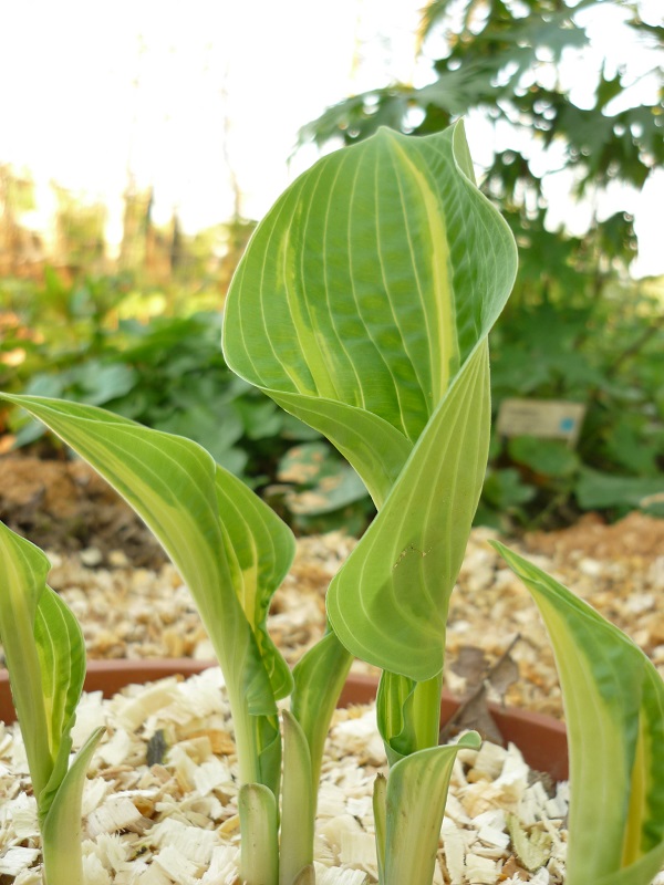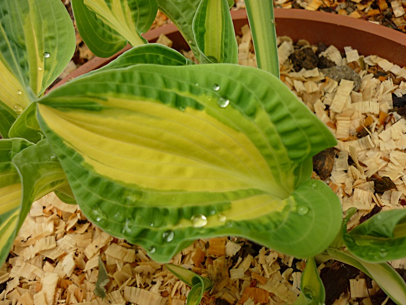 Zielone odrosty mają dobrą substancję liści i są chyba powrotem Happy Dayz do prababki, sieboldiany. Kolorystycznie są niebieskawo, a raczej sinozielone.