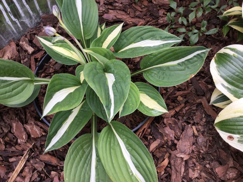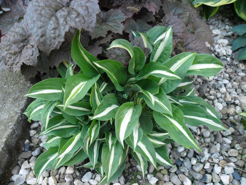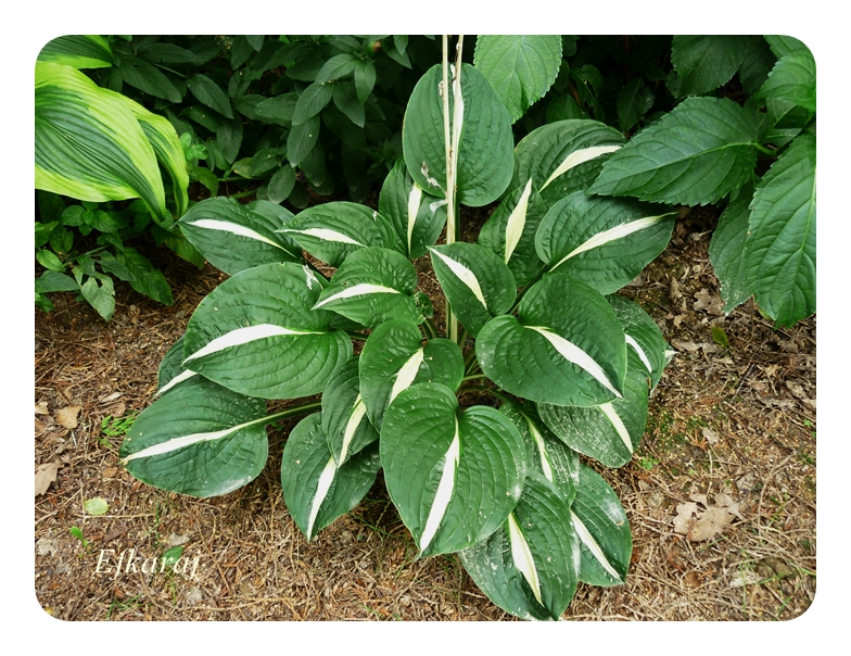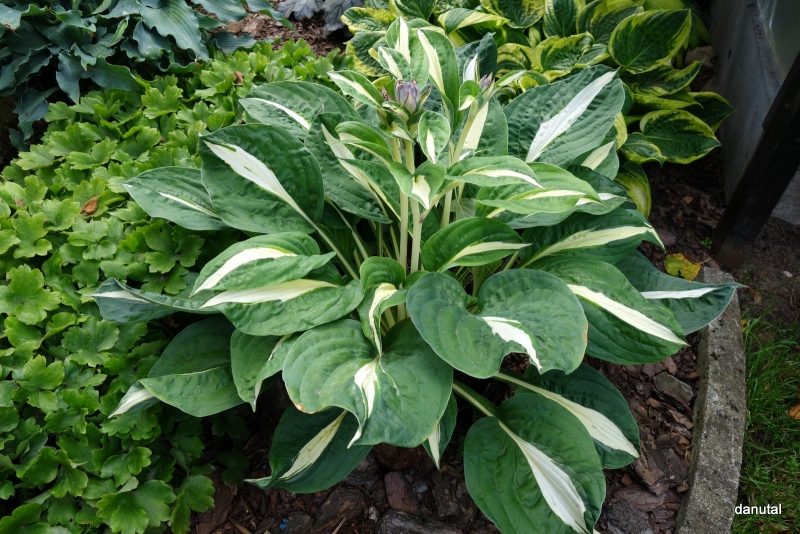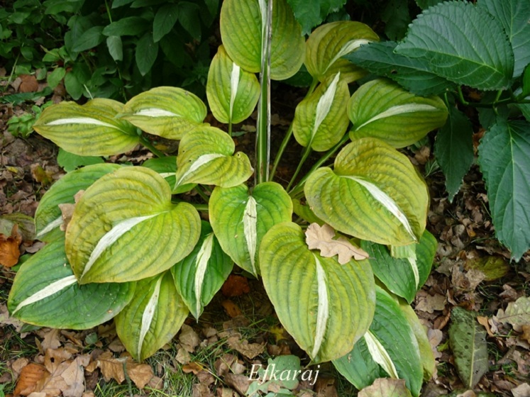 Liście: biały środek otoczony jest szerokim ciemno zielonym marginesem. Utrzymuje te kolory przez cały sezon.