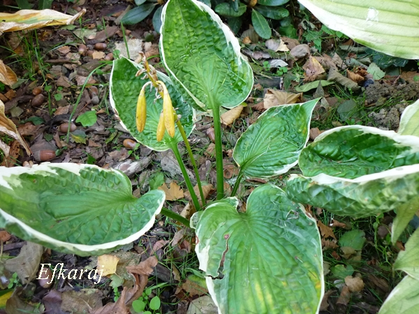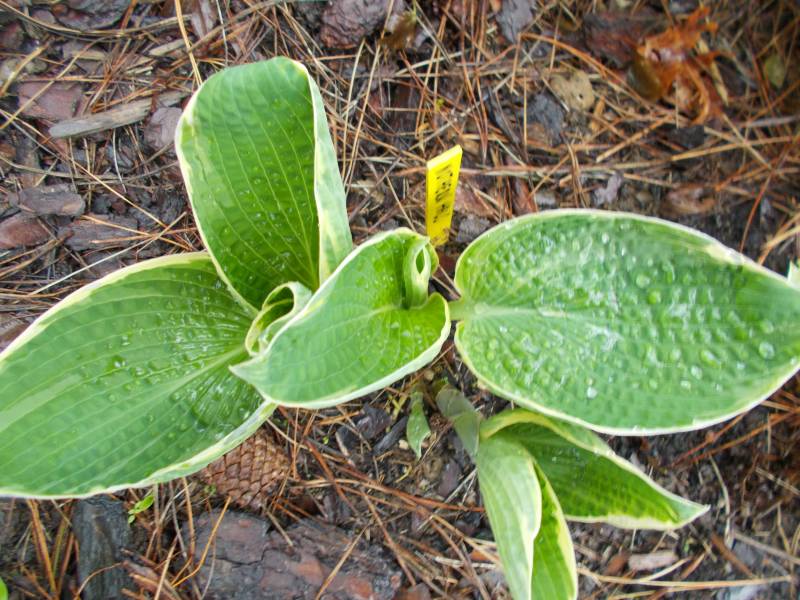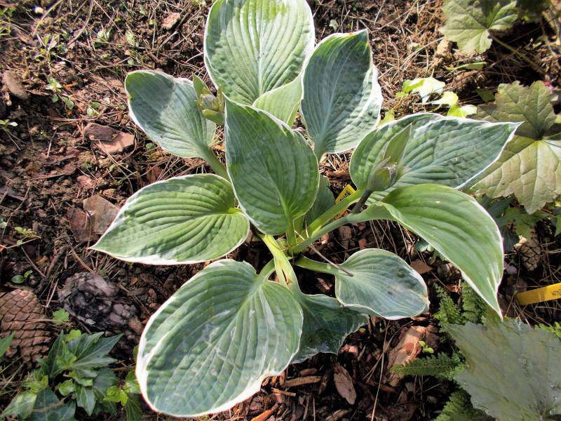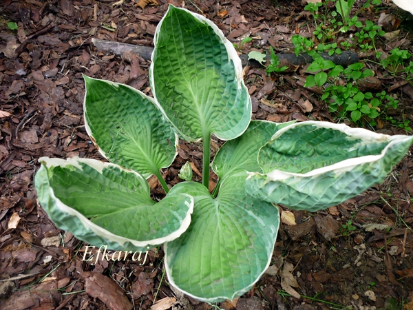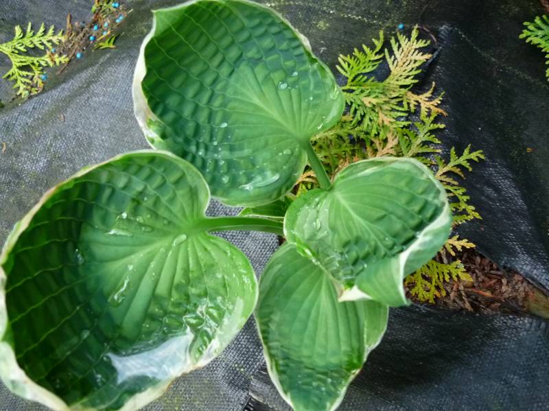 Liście:ciemnozielone, z szaroniebieskim odcieniem, prawie okrągłe, burchlaste z białym cienkim, streczujacym marginesem.