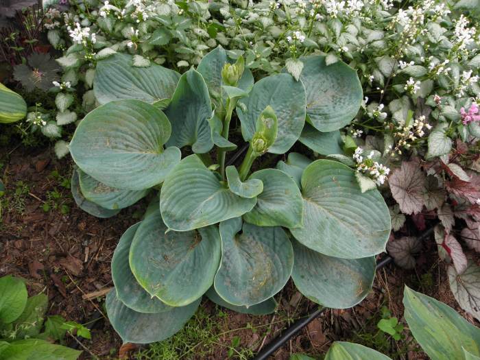 Hostalibrary i Fransen podają, że Academy Blue Titan jest siewką hosty montana i hosty sieboldiana Elegans.