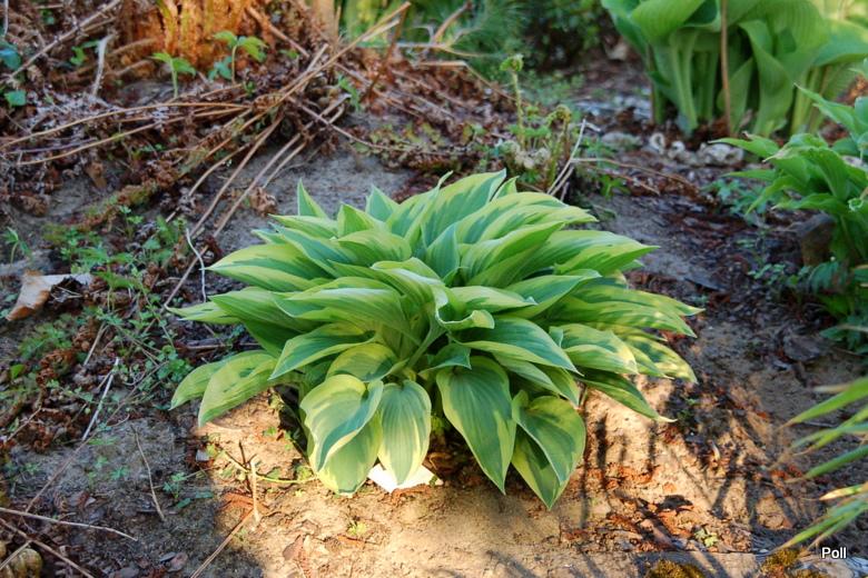 Hosta Angelique od początku uprawy na tym samym stanowisku - półcienistym, dość spadzistym stoku dryopterisowej górki.