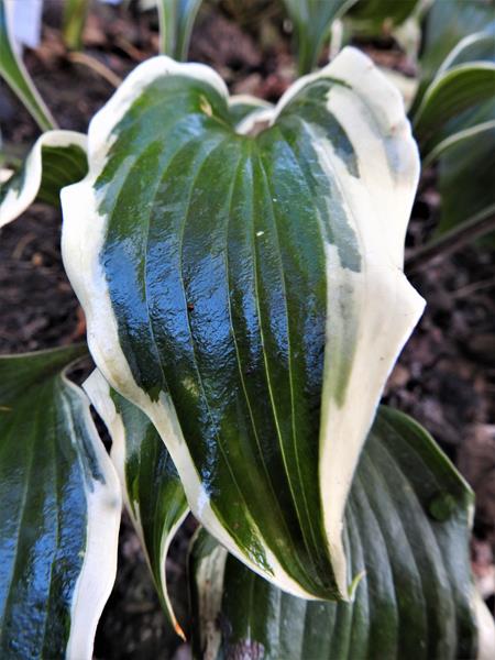 Ciemne, błyszczące liście z białym falującym marginesem, nakrapiane nóżki, ślimaki nie ruszają - ideał hosty :lol: