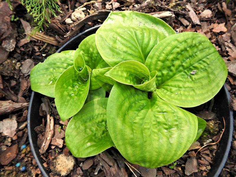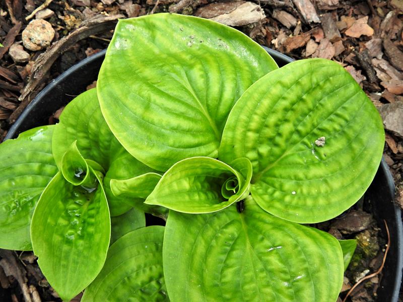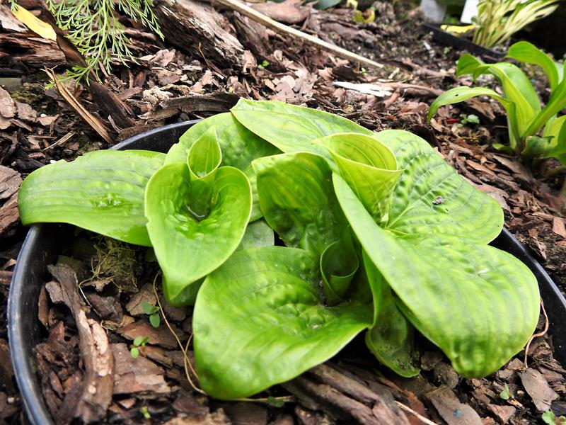 Hosta 'County Park', skubnięta trochę wiosennymi przymrozkami.