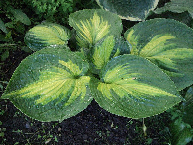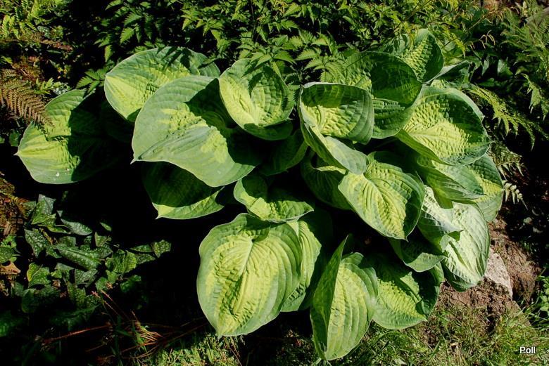 - hosta zaliczana do odmian o burchlastych (gufrowanych) liściach, których rozmiar wynosi około 35 x 25 cm
