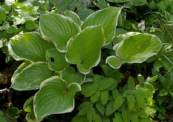 Hosta 'Super Sagae' w ogrodzie Eli/muchazezlotym, prezentuje się nieco inaczej.