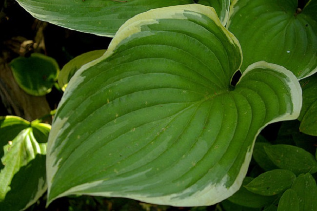 Liście szarozielone z falującym żóltym marginesem, który jaśnieje do kremowego w ciągu sezonu.