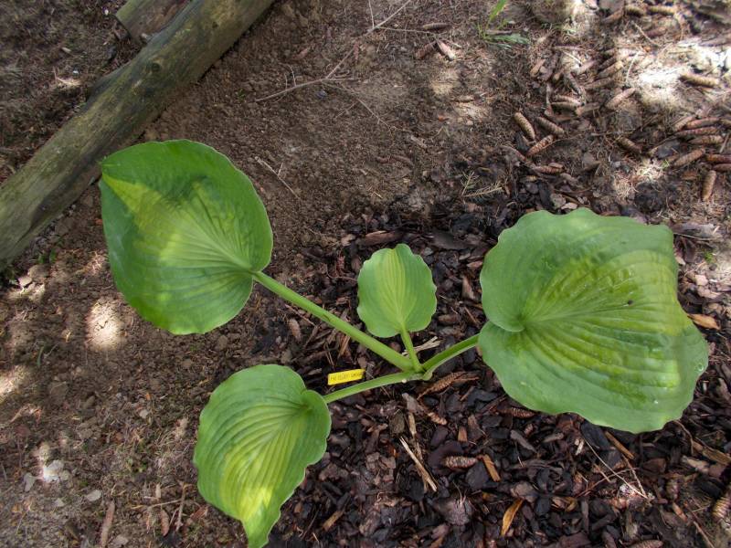 Rozmiar -L (wysokość jest niejednoznaczna , jedni podają do 90 cm , inni do 70 cm ) Liście - bardzo grube i lekko wykrzywione , wiosną zielone , później wąskie centrum jaśnieje i robi się jasno złote a szeroki margines pozostaje zielony Kwiaty jasno lawendowe Stanowisko - cień , półcień Wzrost - średni do wolnego
