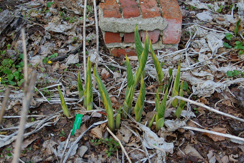 Trzeba jednak pamietać, ze Sagae dość wcześnie wystawia nad ziemię swoje kły i może być przez to narażona na uszkodzenia od przymrozków. Lepiej wiec poszukać jej chłodnego, częściowo cienistego miejsca nawet wiosną. U mnie ma cień, ale tylko w sezonie. Drzewa liściaste nie zapewniają cienia wiosną. Co rok więc jest trochę podmrażana.