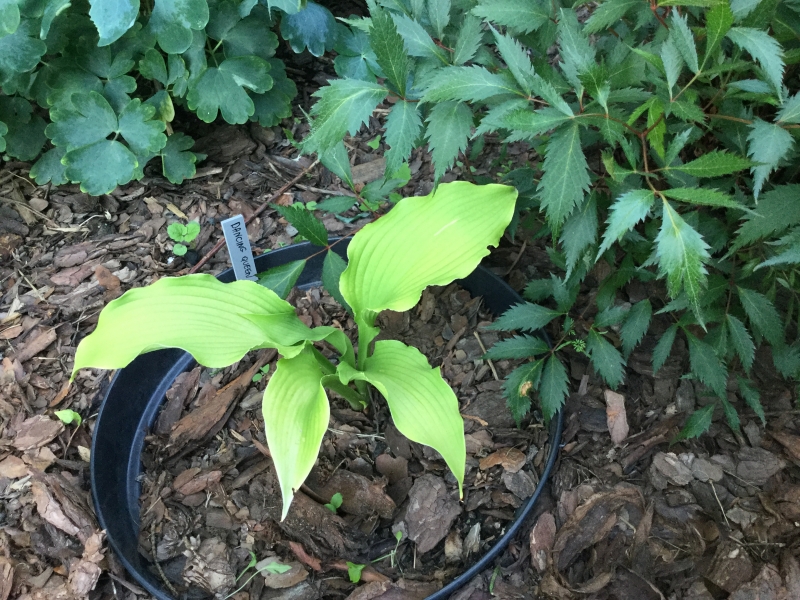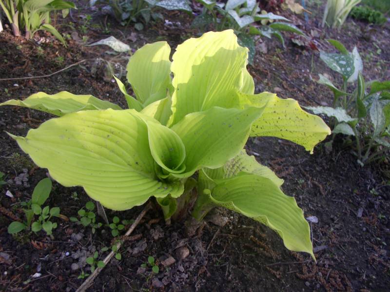 Sześciolatka , dzielona i po przejściach z gryzoniami. Wdzięczna i ujmująca hosta, mocno jaskrawa, szczególnie wiosną.