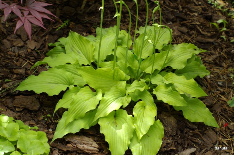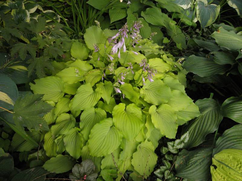 Rozmiar: S/M wysokość 25-30cm Liście: żółto-zielone z falującym brzegiem Kwiaty: lawendowe Zalecane stanowisko: znosi do 50% słońca Uwagi:
