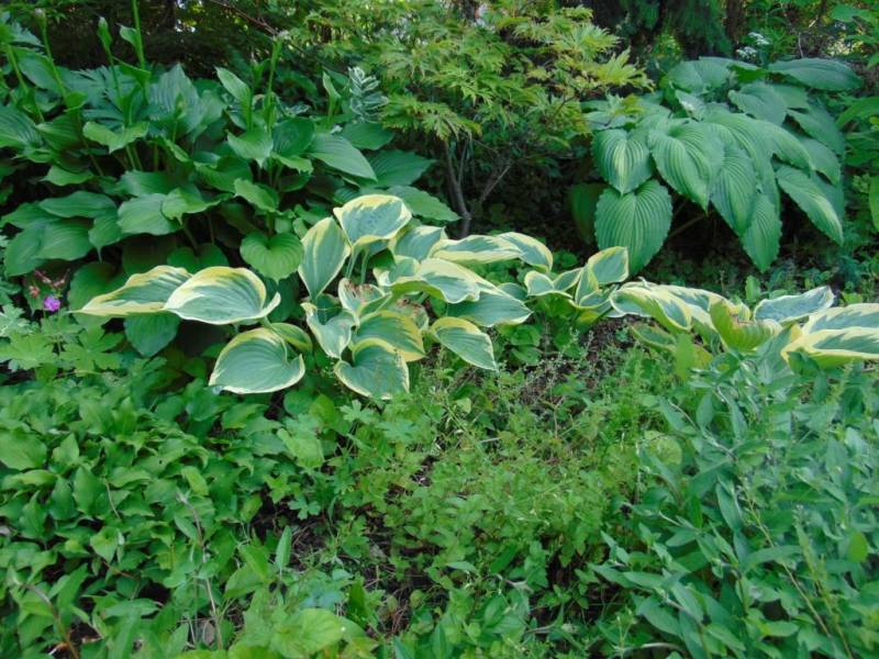 U mnie serce jest tresowane żeby nie wyszło tak jak u Mirki ( ostatnio zbuntował się kuzyn któremu podstępnie usiłowałam wcisnąć starsze odmiany liliowców ). Z pokrojem host to prawda objawiona ( mnie niestety też zbyt późno się objawiło ) - żeby dużą hostę móc podziwiać potrzeba naprawdę dużo miejsca. W związku ze związkiem mam szlaban na nowe hosty, bo w części leśnej chcę wyeksponować te hosty które już mam. Sen z powiek spędza mi problem podziału przestrzeni, tak z łakomstwa nasadziłam że nie ma wyjścia i trza sięgnąć do klasyki angielskiej - "pokoje ogrodowe" wydzielone żywopłotami. Szczerze pisząc wolałabym tego uniknąć ale nie wiem czy uda się z tego mojego miszmaszu zrobić jakąś spójną całość. Tak się właśnie człowiek martwi jak sobie w ogrodzie zapuścił "wszystko". :glupek