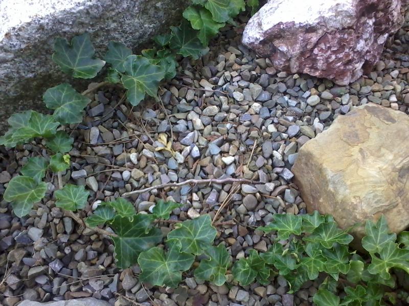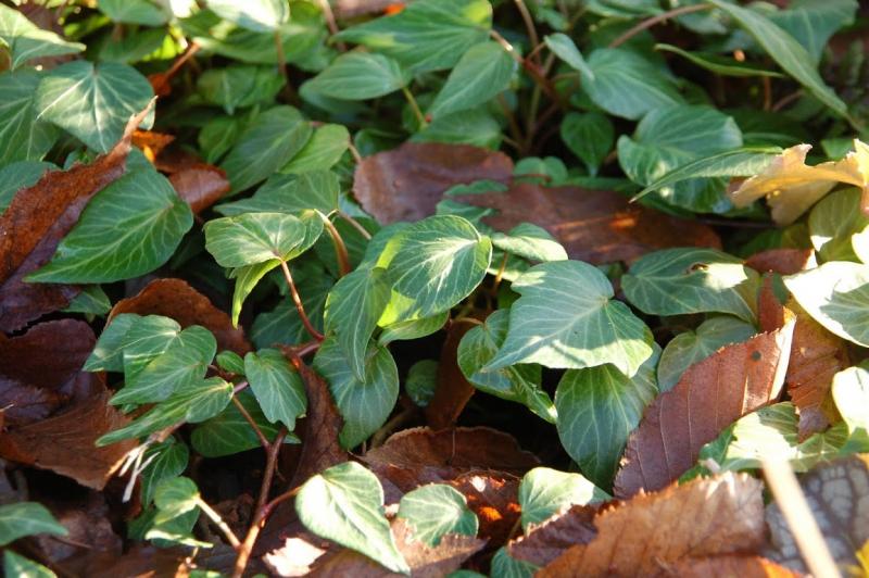 Moje - co mniej odporne bluszcze - już przygotowane do zimy. Spędzą je zasypane po uszy liśćmi. Zawsze tez wcześniej przyciskam jeden z pędów sporym kamieniem, bo dostałam nauczkę zimą 5lat temu, kiedy wymarzły mi wszystkie niemal bluszcze.Przetrwał tylko 'Erecta' w malutkich kawałku, który był schowany pod wielkim mkorzeniem.