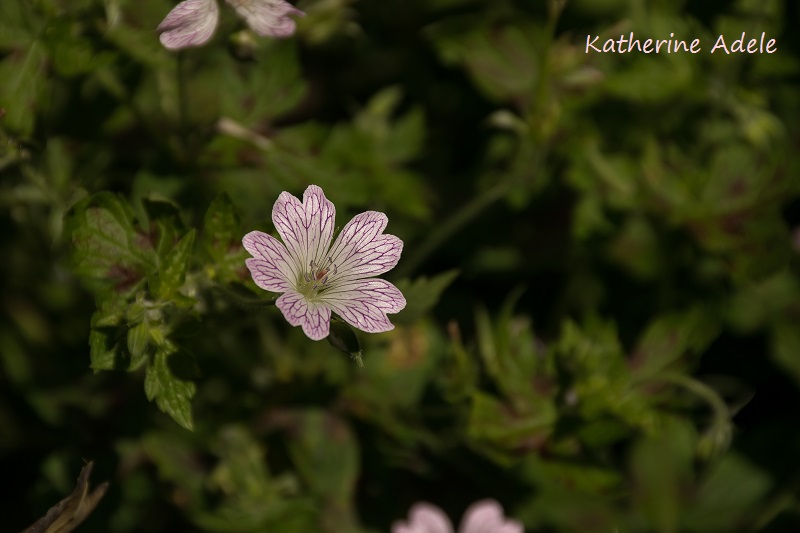 Katherine Adele kwitnie już od połowy maja, niższa od poprzedniej odmiany (ok. 20 cm), pędy kwiatowe mają skłonność do wykładania się. Liście mają brązowe nieregularne plamki.
