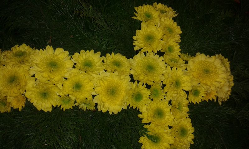 U nas kwiatami na grobowiec zajmuje się moja mama, która ma dar florystyczny. Niestety, szukam i szukam i zdjęć nie ma. Jedno tylko z ubiegłego roku. Również u nas nie ma typowych cmentarnych wiązanek.