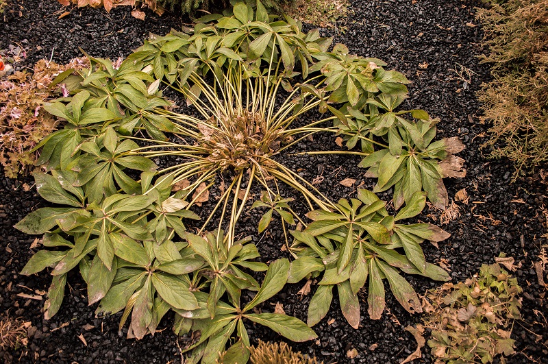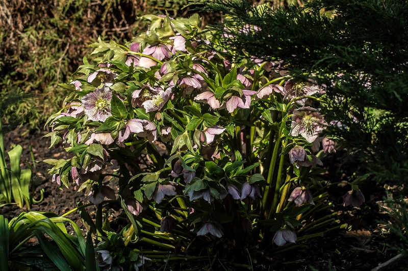 Helleborus niger z podziału od koleżanki w ubiegłym roku zakwitł na początku lutego, w grudniu przysypałam jego pąki kwiatowe liśćmi, ponieważ rok wcześniej nie osłonięte zmarzły.