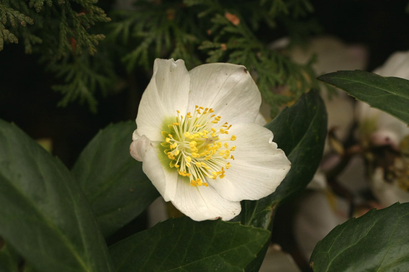Mój biały Helleborus niger z podziału od koleżanki w ubiegłym roku zakwitł na początku lutego, w grudniu przysypałam jego pąki kwiatowe liśćmi, ponieważ rok wcześniej nie osłonięte zmarzły.