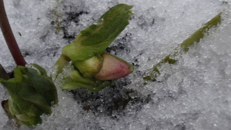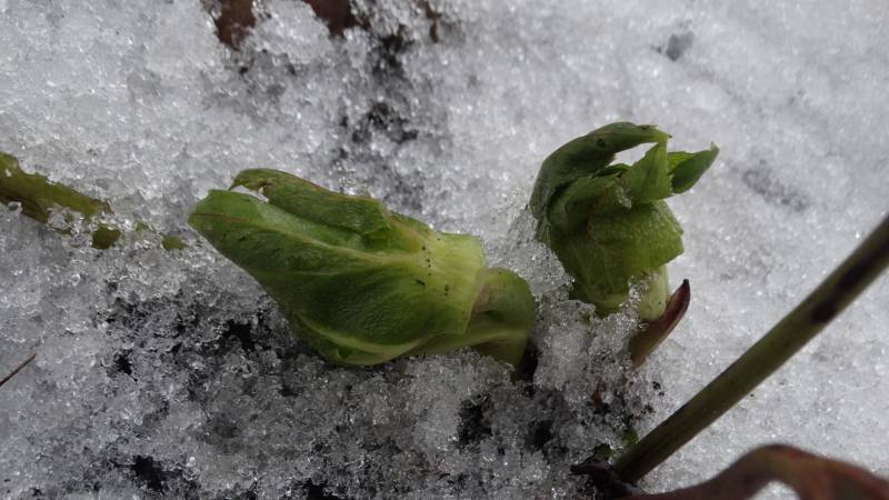 jakiś debiut z kiełków, pąki olbrzymie w porównaniu z innymi, wystają główki uszate ze śniegu