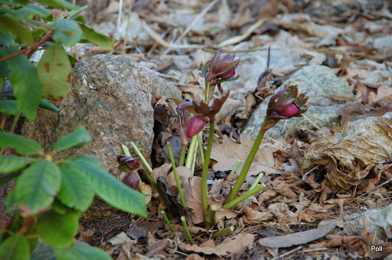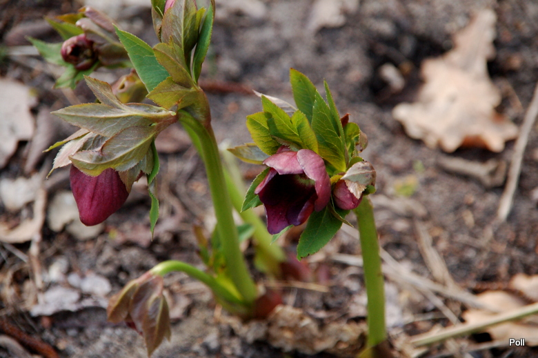 Generalnie powoli idzie rozwijanie paków ciemierników. Noce są bardzo zime, wczoraj było -2C. W dzień niby cierpło, ale zimne wiatry powodują, że odczuwalna temperatura jest sporo niższa, niż te 7C na termometrze.