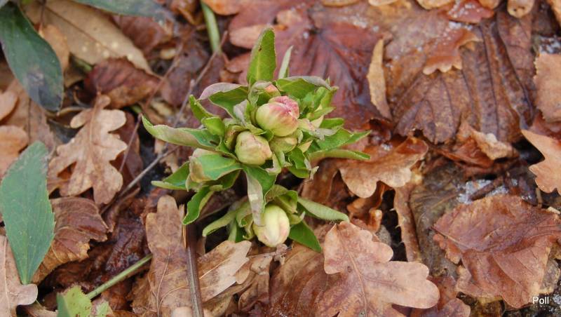 Pąki Helleborus x 'HGC® SP Anja Oudolf' już gotowe do rozwinięcia, tylko trzeba trochę ciepła:
