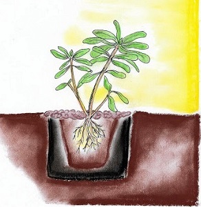 5. Tak przygotowaną sadzonkę sadzimy do niewielkiej doniczki z odpowiednio przygotowanym podłożem na taką głębokość, by była w nim dobrze osadzona. Najlepszy podłożem będzie tu czysty przekompostowany kwaśny torf , pokryty cienką warstwą piasku lub mieszanina przekompostowanego kwaśnego torfu i gruboziarnistego piasku w stosunku 4:1 lub 3:1. Natomiast nie stosujemy świeżego torfu z uwagi na to, że zawiera on substancje mogące uszkadzać rośliny!