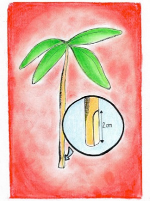 3. Robimy pionowe nacięcie u podstawy pędu na odcinku około 2 cm. Po czym: