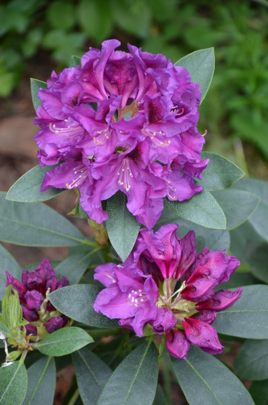 Mam jedno zdjęcie Rh Olin O.Dobbs, ale on juz dawno u mnie przekwitł, jeszcze przed zlotem. Miał tylko 3 grona kwiatów i to nieco zniekształcone, więc nie mogę byc do końca pewna, czy to on. Kolor bardziej jednak pasi, niz w wypadku 'Karl Naue', bo on bardziej krwisty.