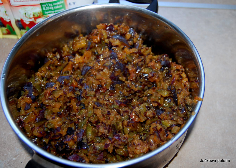 Zdjąć z ognia, jeszcze chwilę przemieszać aż zginie piana i gorące nakładać do słoików, które na ok 5 minut postawić do góry nogami.