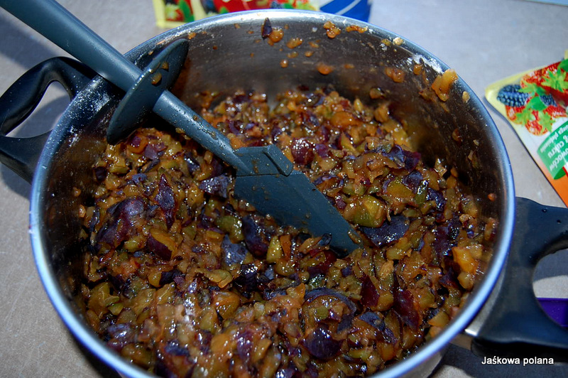 śliwki lekko rozdrobnić, ja zrobiłam to w TM , można to zrobić również blenderem.