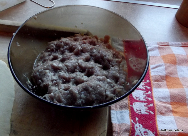 Farsz pakujemy w ciasto, gotujemy i gotowe.