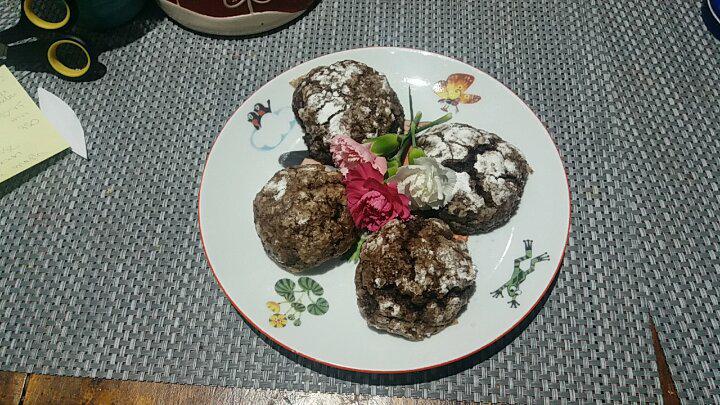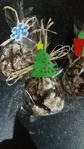 Szybkie bombki- ciasteczka w typie brownie, w środku nieco gliniaste, nie są twarde. Mikserem robi sie je 7 minut + pieczenie. Przepis znalazłam na Fb, dodał ktos chyba z USA. Zapodałam go córce a ona wczoraj wypróbowała, bo wieczorem, ok 21 przypomniała sobie, że u Poli w szkole jest kiermasz świateczny i obiecała coś przynieść. Zdjęcia więc niezbyt apetyczne, z fonu, autorstwa mojej Dagusi.