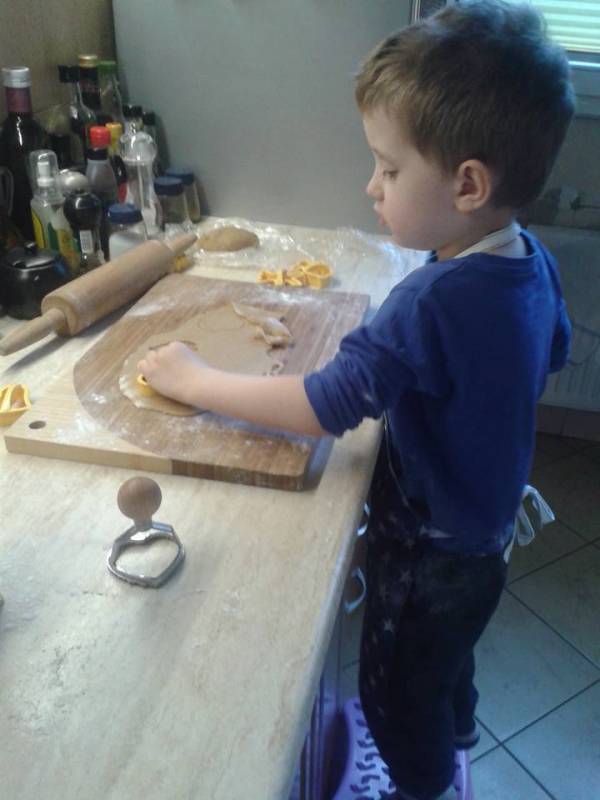 Dzisiaj pokażę Wam jak kolejne pokolenia przygotowują się do świąt. Oto mój 8-my z kolei, 3,5 roczny wnuczek jako najmłodszy master szef junior :diabelek Jedyna pomoc dorosłych to odmierzenie produktów i obsługa piekarnika, reszta to wszystko dzieło Antka.