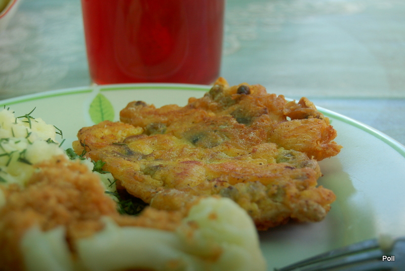 Drugie danie na szybko to tortilla - znajoma hiszpańska zakonnica mnie nauczyła. Na jakimś filmie H. Ford robił podobne danie i nazywał to fritata. Jak zwał tak zwał. Potrzebujemy pyry ugotowane w mundurkach. Najlepiej dzień wcześniej ugotować podwójną porcję - część wykorzystać do pyrów z gziką, resztę następnego dnia obrać ze skórki, pokroić w talarki i podsmażyć na tłuszczu na złoto razem z pokrojoną cienko cebulą (wcześniej można ja na chwilę zalać wrzątkiem - mniej wzdyma) dodać suszone pomidory, paprykę pokrojona w kawałki, gotowana fasolkę szparagową, co tam komu w lodówce zalega i całość zalać roztrzepanymi jajami doprawionymi wg uznania- 2-3 szt.