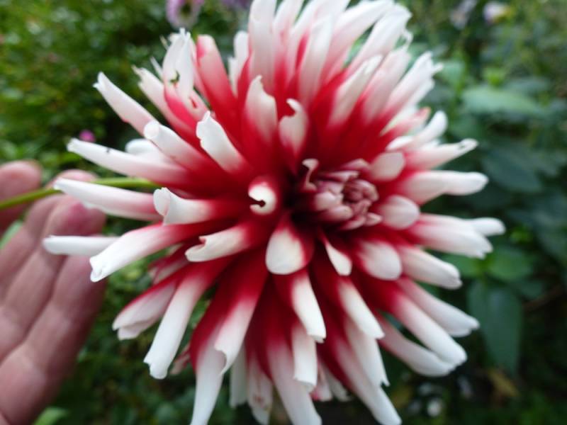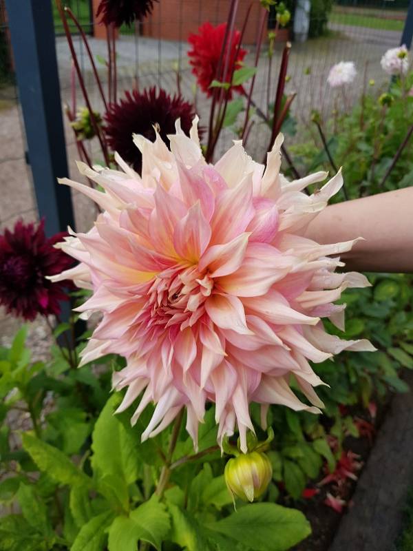 Piękna dalia ale rośnie wysoka o dużych kwiatach i przy wiatrach bardzo sie łamie