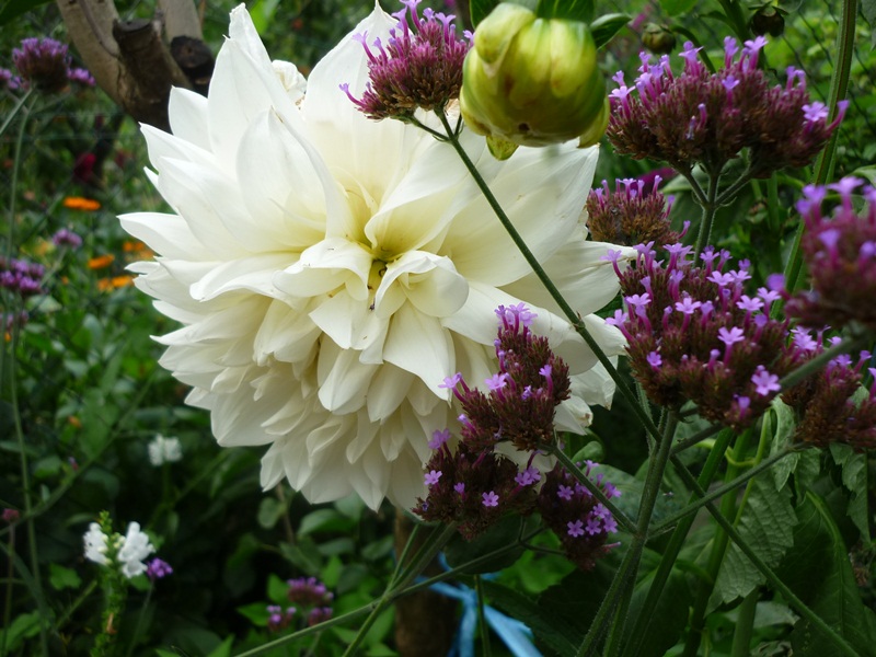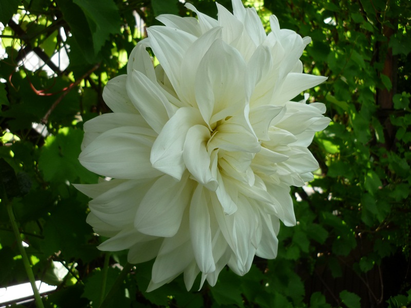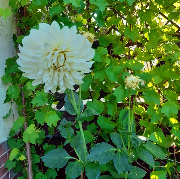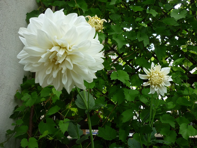 Jedna dalia w pojemniku osiągnęła wysokość 140cm, a druga, której ślimak zjadł główny czubek wzrostu, ma obecnie 90 cm i jeszcze nie kwitnie.