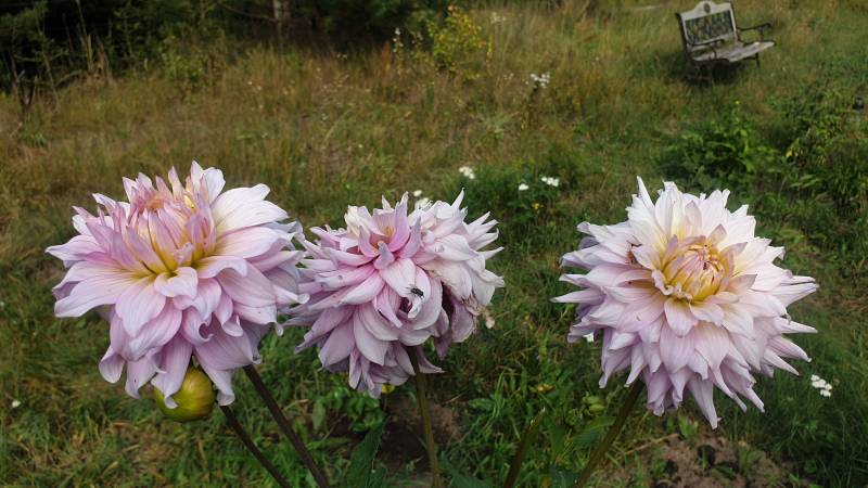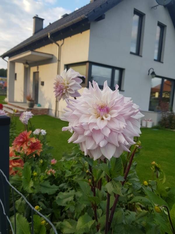 Dalia Who me przyjechała z eleganckiego ogrodu Karoli. Niezbyt przejmuje się suszą. To najlepsza odmiana jaką mam, zakwita najwcześniej i bukietami, gwiazdorzy na suchej piaszczystej łące. Wysoka, ma mocne łodygi, nie pokłada się i nie wyłamuje.Tutaj będzie San Francisco. Mam nadzieję, że to zdjęcie oddaje wartość tej odmiany