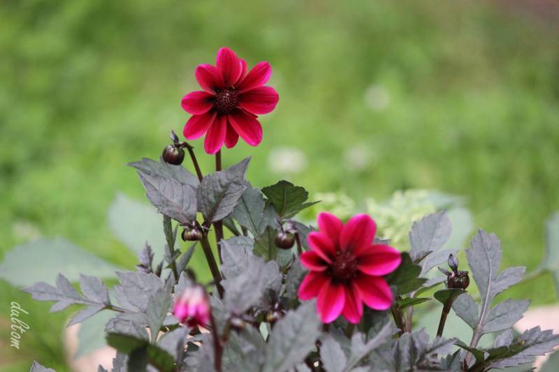 Pozwolę sobie zapoczątkować wątek zdjęciowy dalii z tego roku. U mnie właśnie zaczęła kwitnienie dalia niska Dracula. Oczywiście była podpędzana w garażu, od marca, więc nic dziwnego, że taka wczesna. :diabelek