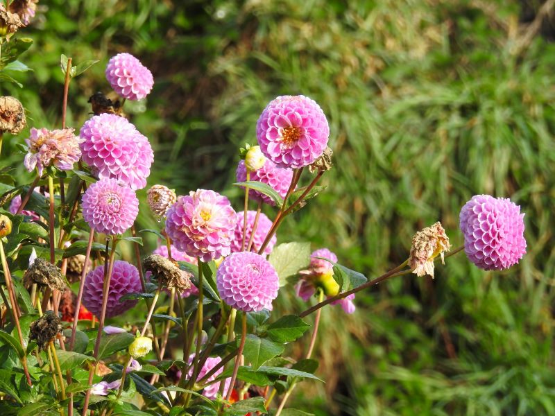Moja dalia Franz Kafka ze względu na półcieniste stanowisko może nie kwitnie tak obficie jak Wasze ze i tak jestem z niej bardzo zadowolona. Urocze są te jej liliowe pomponiki