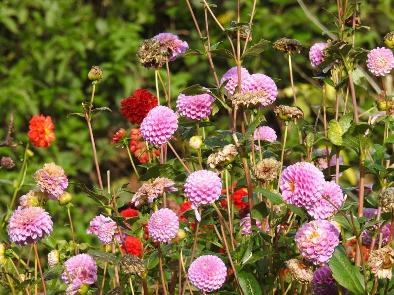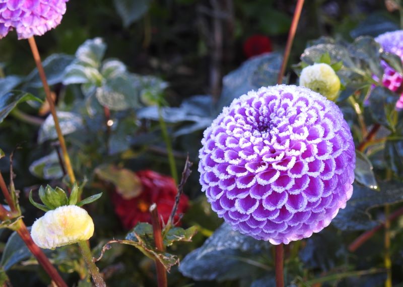 Ta dalia zaskoczyła mnie dwa razy. Najpierw wyjątkowo wczesnym kwitnieniem, teraz jego długością i obfitością.