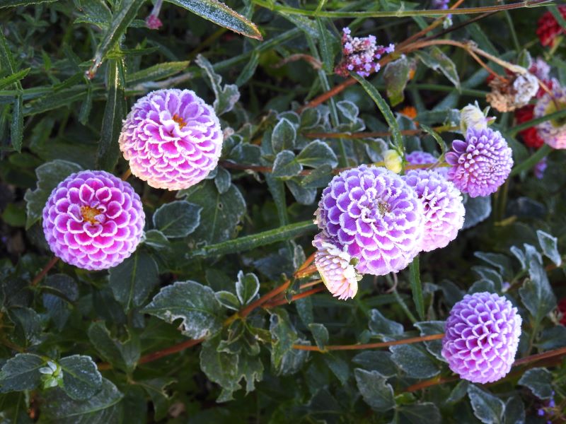 Po przymrozkach -1℃ liście ma trochę uszkodzone, ale wciąż rozwija nowe kwiaty.