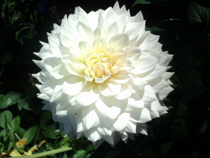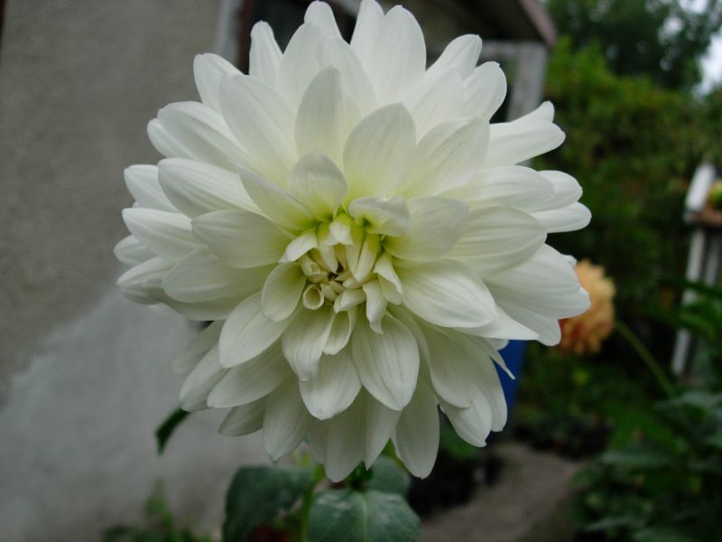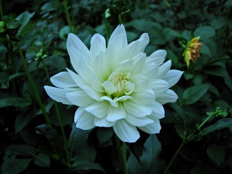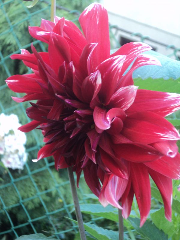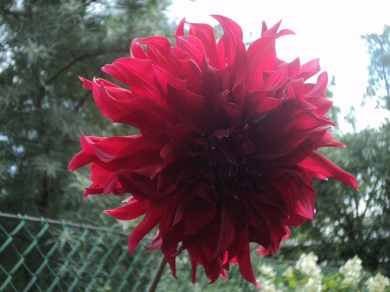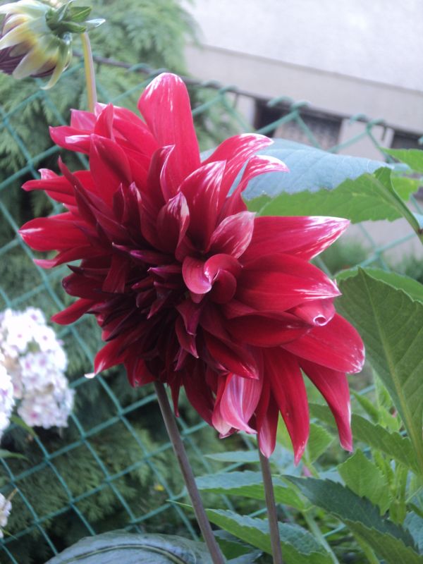 Dalia 4 - wysokość -115 cm; ∅ kwiatu - 10 cm; w trakcie kwitnienia zatraca biel na płatkach; od S. Lipień, 2016.