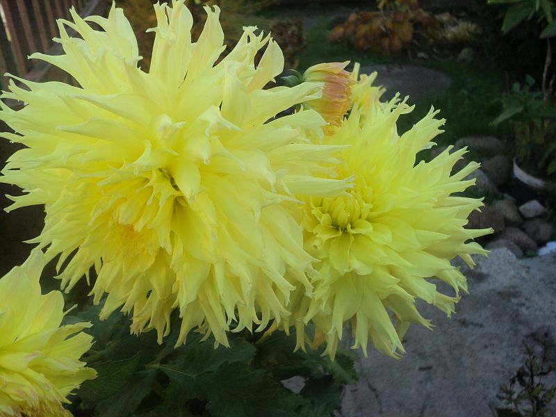 - czerwone końcówki widoczne w początkach kwitnienia , kończy sezon jako żółta dalia