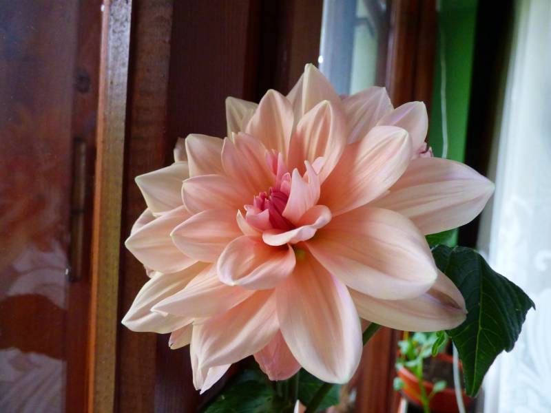 Jest to dalia z dużym kwiatem Różowa NN,jednak rośnie nadal w domu nie była doniczka na dworze więc barwa trochę jasna.