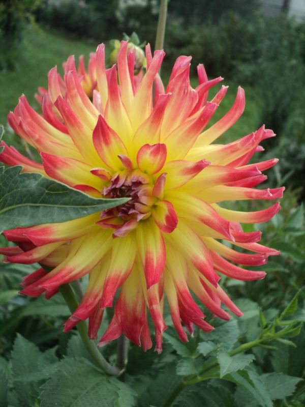 Wydaje mi się, że to Ludvik Mühlstein. Tyle się na nią w tym roku napatrzyłam. Zawsze ma co najmniej jednego kwiatka i ciągle obok niej przechodzę. I kolor, i to, że najpierw płaska od spodu, a później robi się z niej żółta kuleczka z ognistymi końcami. Kwiat nie niżej niż na wysokości wzroku.