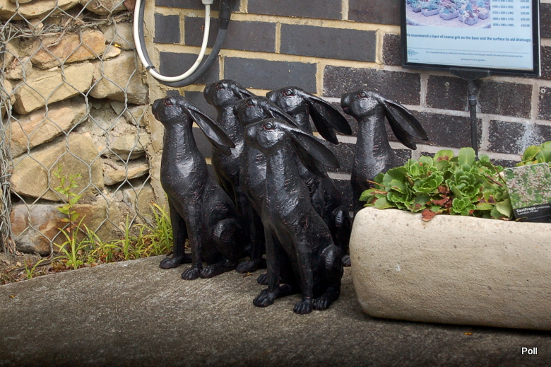 Kilka gadżetów ogrodowych ze sklepu przy jednym z pokazowych ogrodów RHS w Anglii... Jak zauwazyłam, w tym roku nie ma natłoku figurek drobiu, które królowały w poprzednich sezonach. Tematem przewodnim stały się żeliwne króliczki :mniam , choć i jakieś koguciska się znalazły wink-3